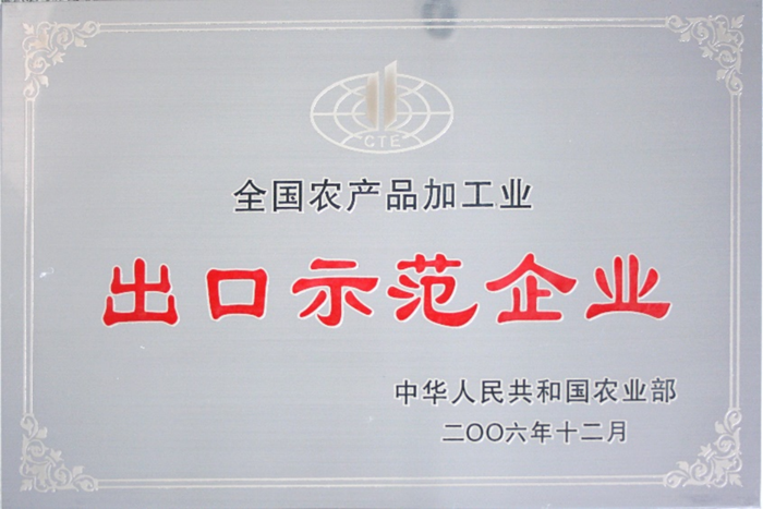 2006年12 月,國家農業(yè)部授予明月海藻集團“全國農產品加工業(yè)出口示范企業(yè)”稱號