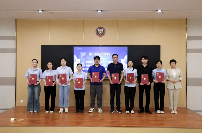 集團(tuán)總裁助理、人力資源部總監(jiān)尹麗莉?yàn)閷W(xué)員頒發(fā)第九期學(xué)員結(jié)業(yè)證書(shū)。