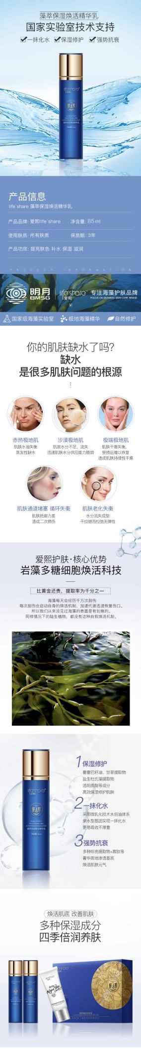 產品介紹:蘊含褐藻、巨藻等多種海藻精粹,補水保濕,水潤舒適,復配寡肽,銀耳提取物,促進吸收,緩解肌膚干燥粗糙、干紋等問題,喚醒肌膚嫩滑水光肌。